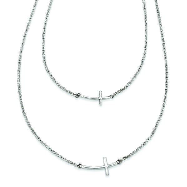 Sterling Silver Two Layer Small Sideways Curved Cross Necklace