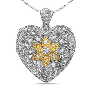 Two Tone Cubic Zirconia Heart Photo Locket