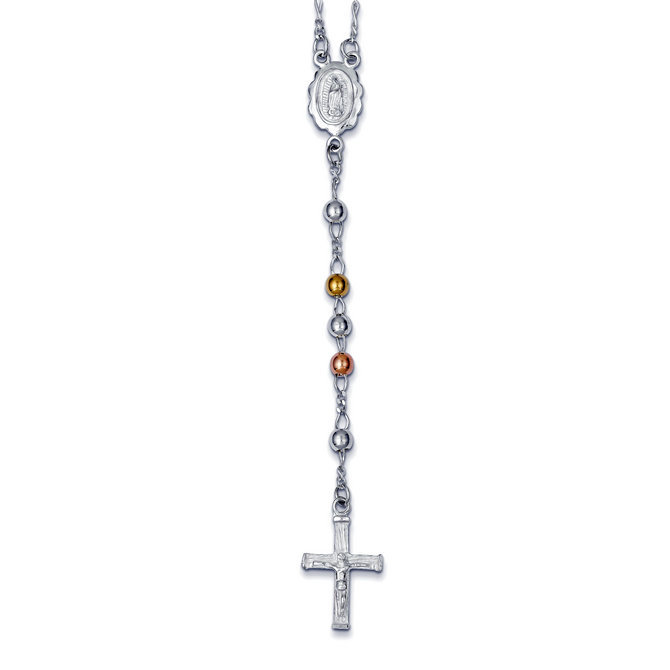 Sterling Silver Yellow & Rose Flash Gold-plated Rosary Necklace /with Miraculous Medal