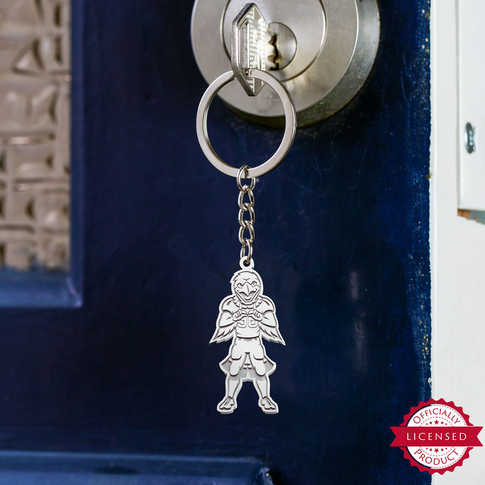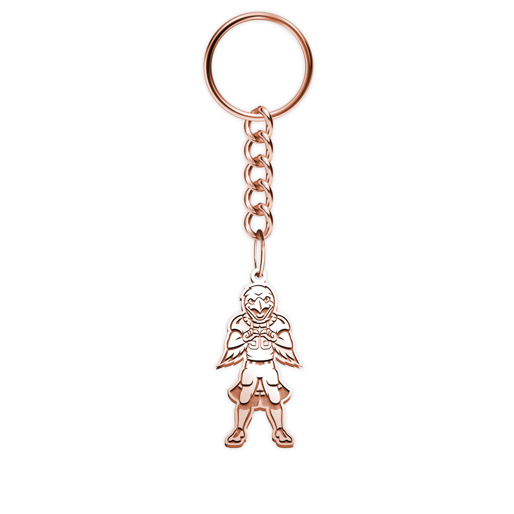What better way is there to display your team pride than with this keychain featuring the Swoop, the Red-Tailed Hawk, mascot for the University of Utah? This keychain is made of solid sterling silver and the logo is etched deep. The keychain can be engraved on the reverse side with a personalized message, names, dates, a monogram,