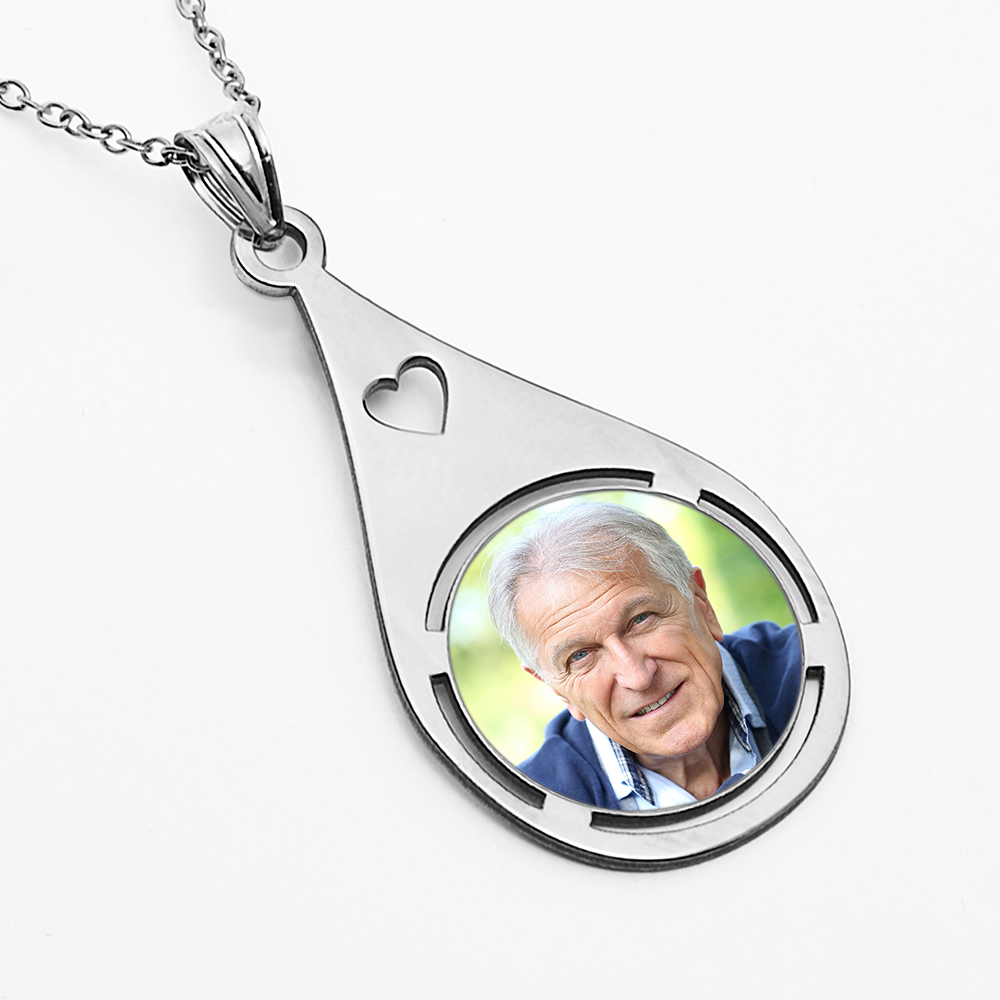 Teardrop Photo Pendant with Heart Cut Out
