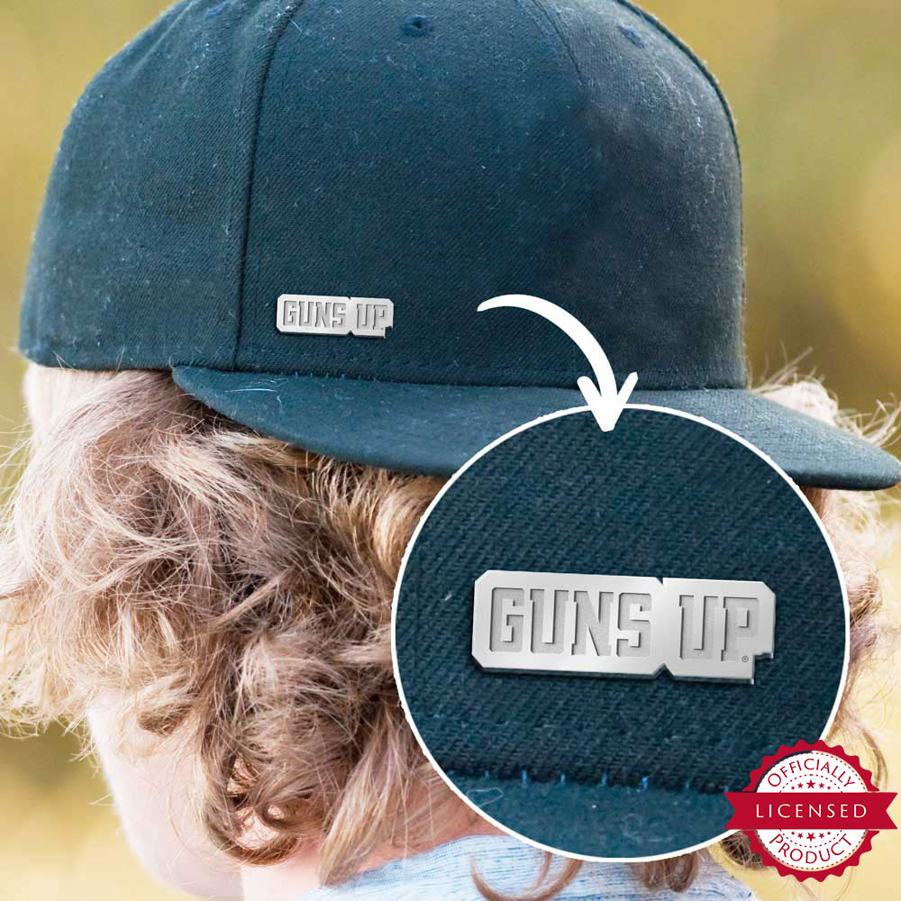made of solid sterling silver and Guns Up is etched deep with a high-polish finish. The pin can be engraved on the reverse