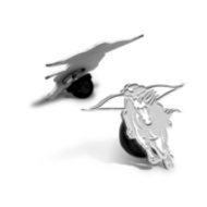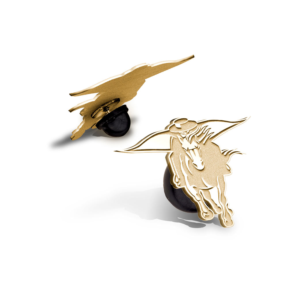solid sterling silver and the mysterious horseman is etched deep with a high-polish finish. The pin can be engraved on the