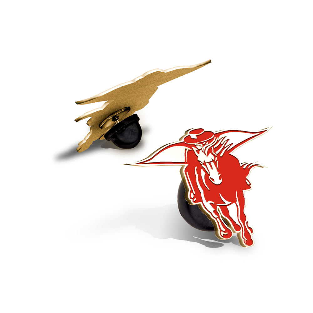 solid sterling silver and the mysterious horseman is etched deep with a high-polish finish. The pin can be engraved on the