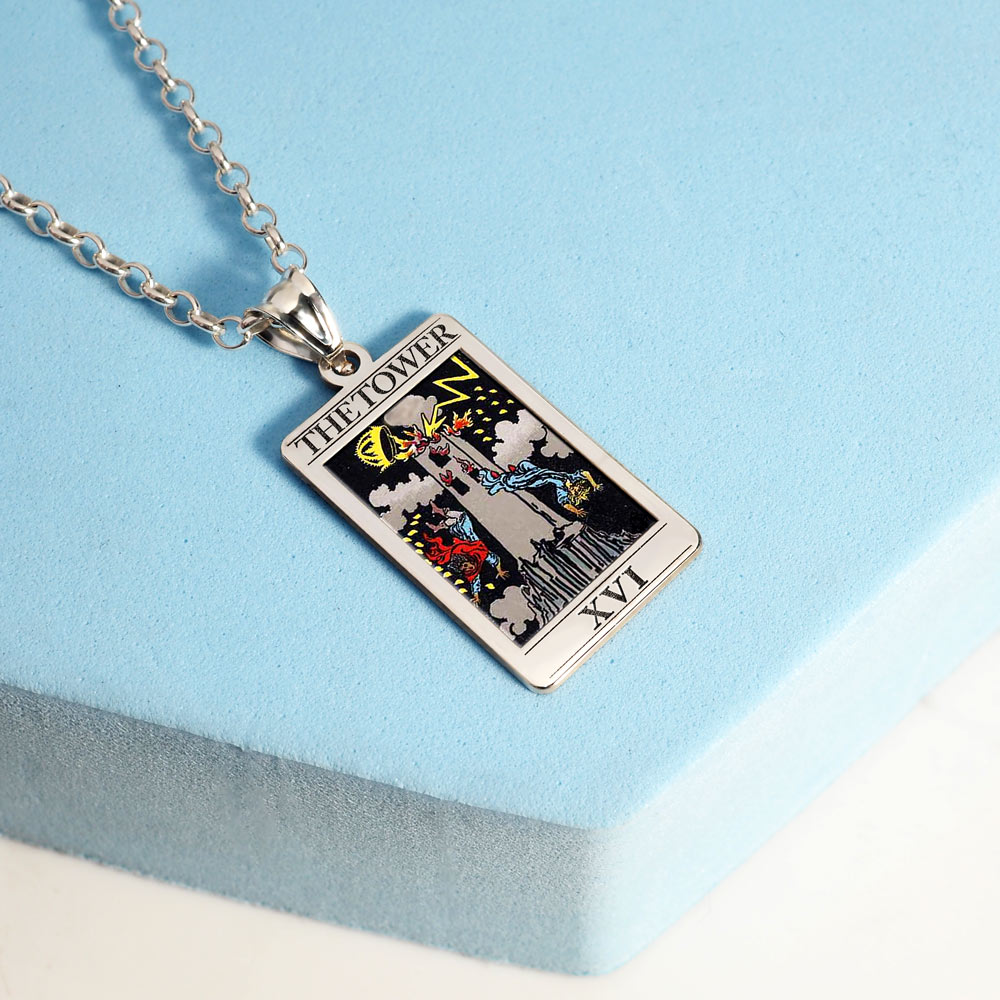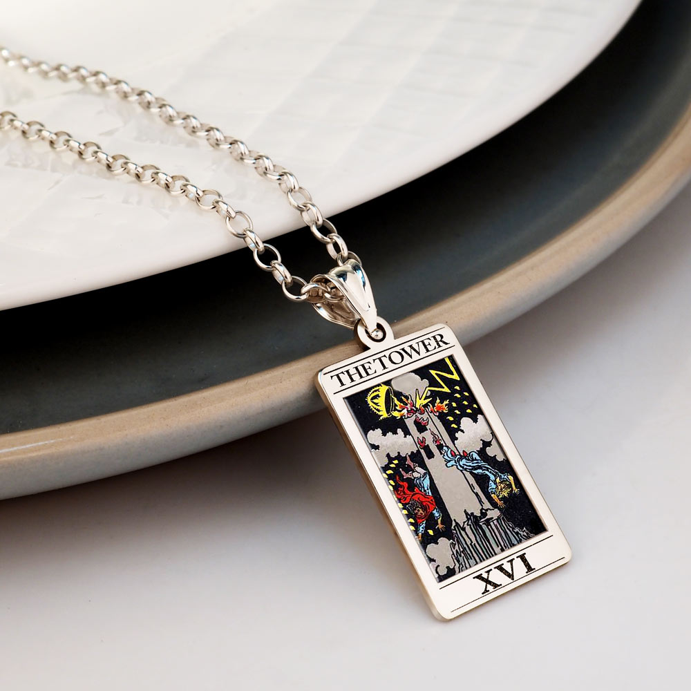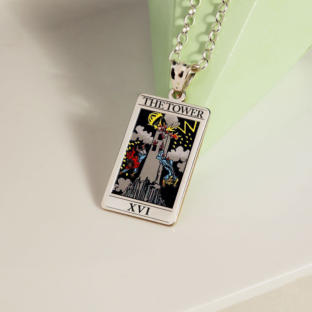 The Tower (XVI) (most common modern name) is the sixteenth trump or Major Arcana card in most cartomancy Tarot decks. It is not used as part of any game.