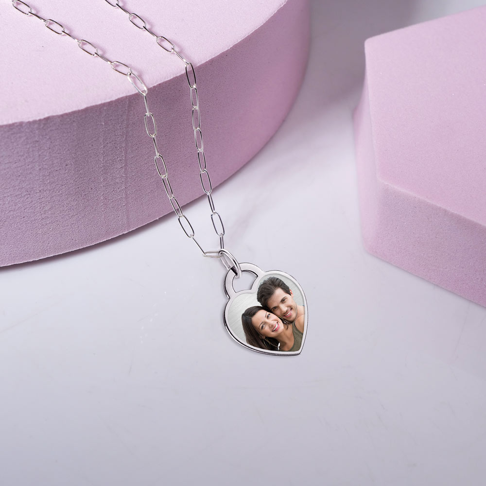 Embrace sophistication with this stunning Tiffany-inspired necklace featuring a heart photo pendant and a modern paperclip chain. Crafted with high-quality materials, this necklace will make a statement wherever you go. The heart pendant allows for customization by adding your favorite photo, making it a one-of-a- kind piece that will be cherished for years to come.