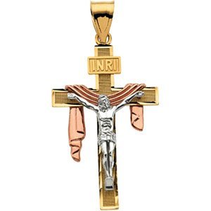 TRICOLOR CRUCIFIX W/SHROUD PENDANT