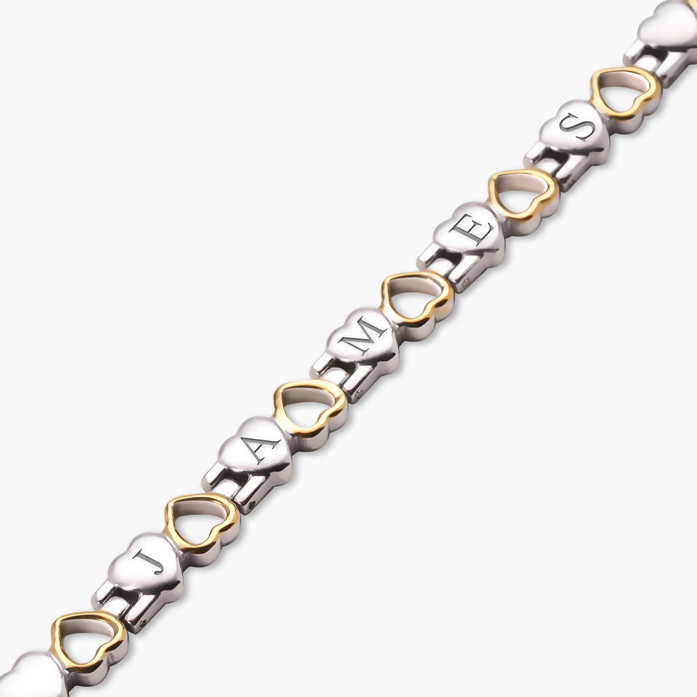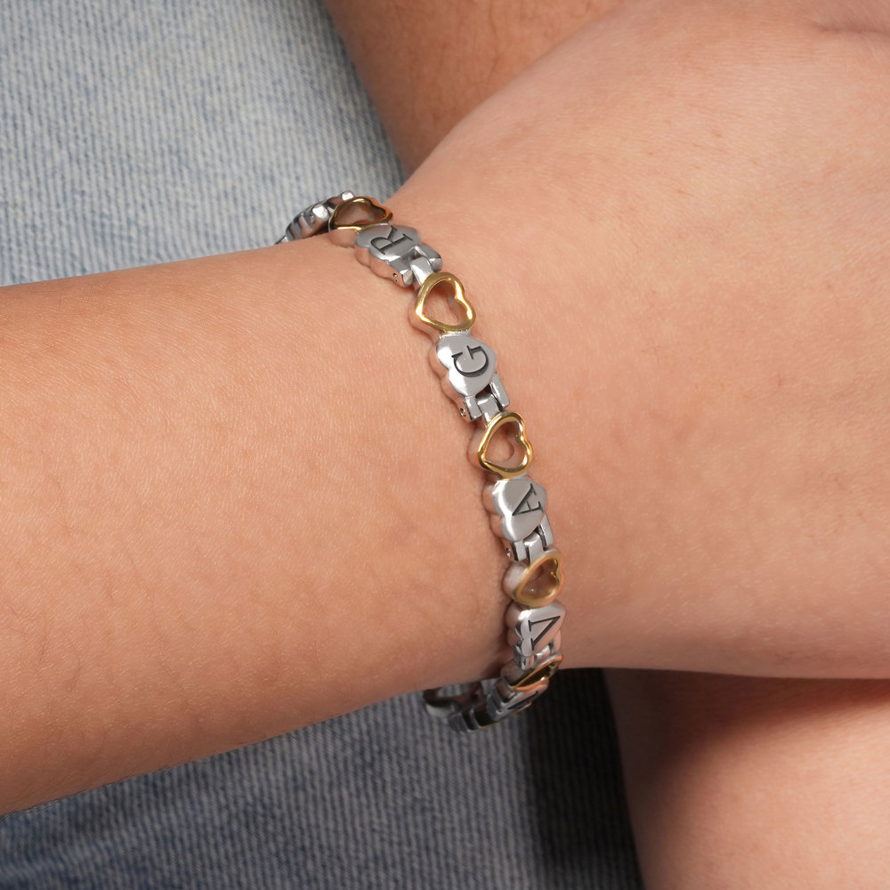 This Two-Tone Heart-Shaped Stainless Steel Bracelet beautifully blends style and sentiment together. Featuring polished