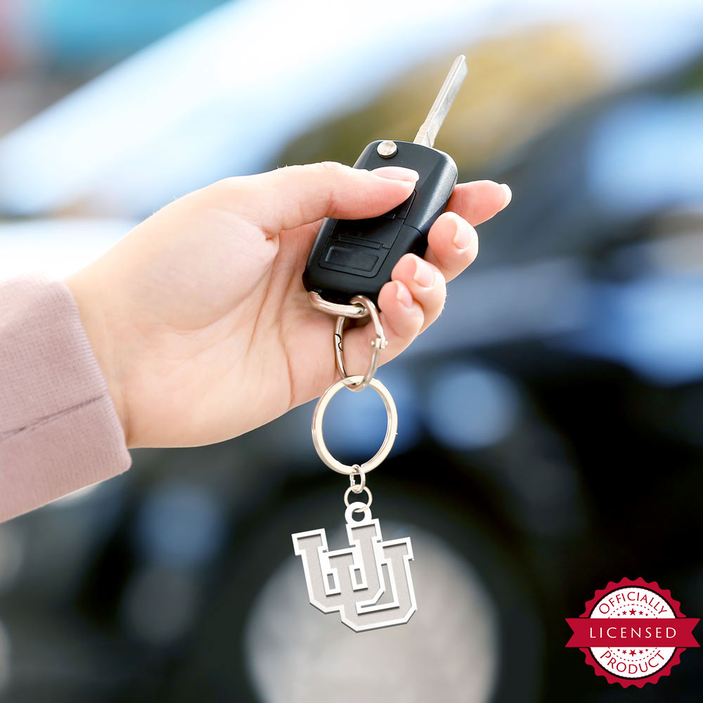 What better way is there to display your team pride than with this keychain featuring the University of Utah's signature intertwined U? This keychain is made of solid sterling silver and the logo is etched deep. The keychain can be engraved on the reverse side with a personalized message, names, dates, a monogram,