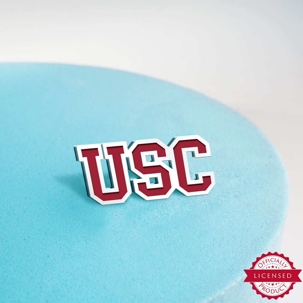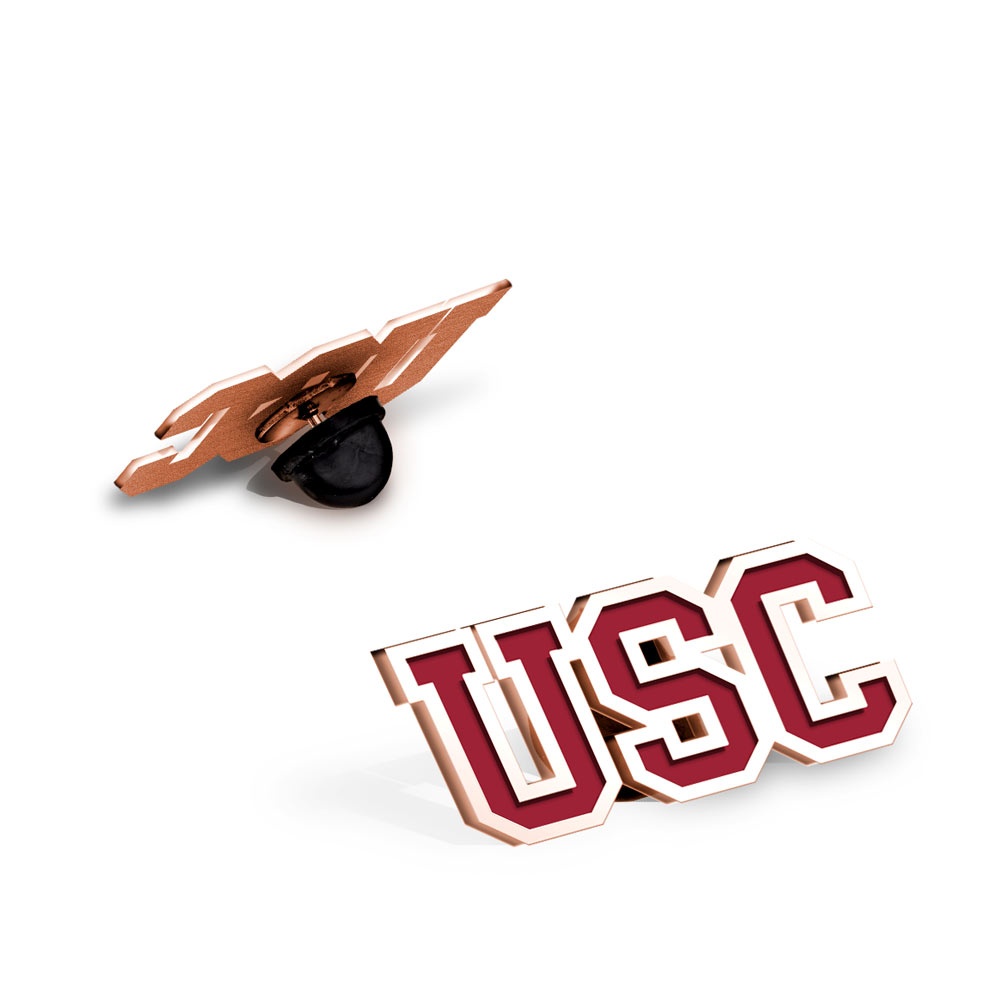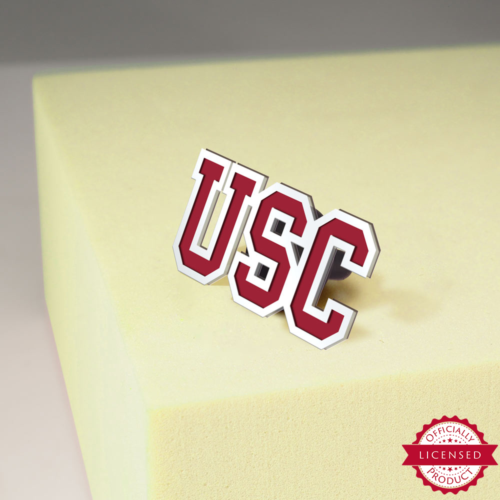 What better way is there to display your school pride than with this University of Southern California pin? This pin is made of solid sterling silver and the logo is etched deep with a high-polish finish. The pin can be engraved on the reverse side with a personalized message, names, dates, a monogram, anything you can think of.