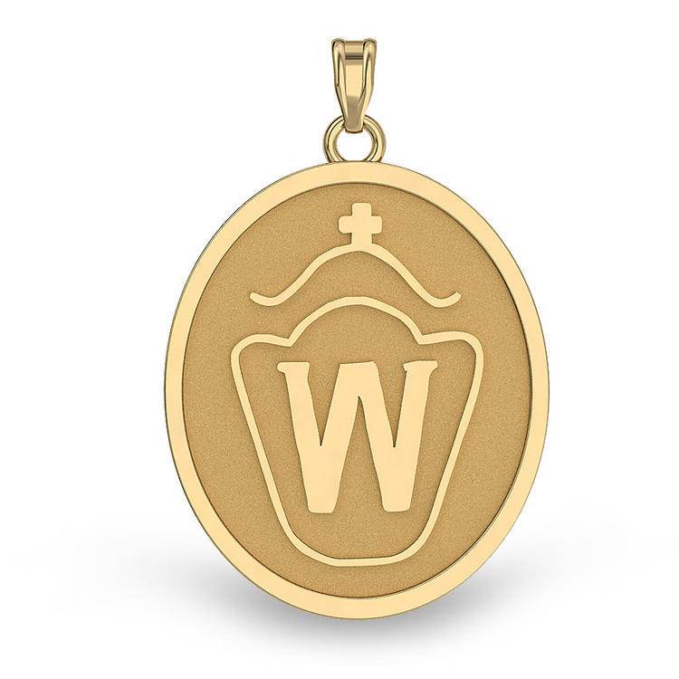 This medal is available in 3 different sizes, and comes in 10k, 14k & .925 Sterling Silver.