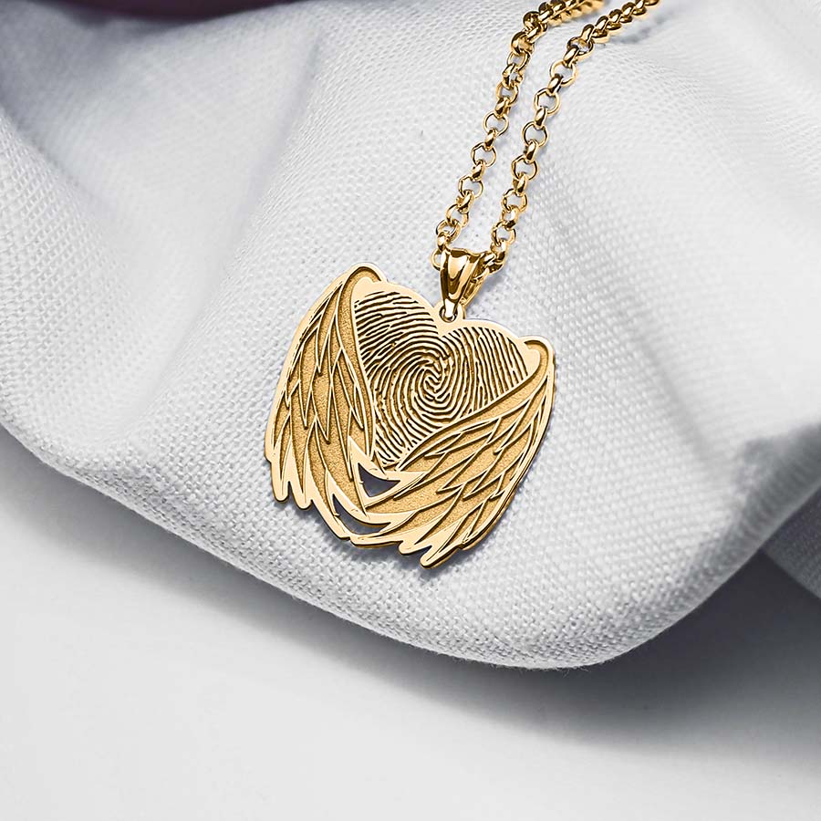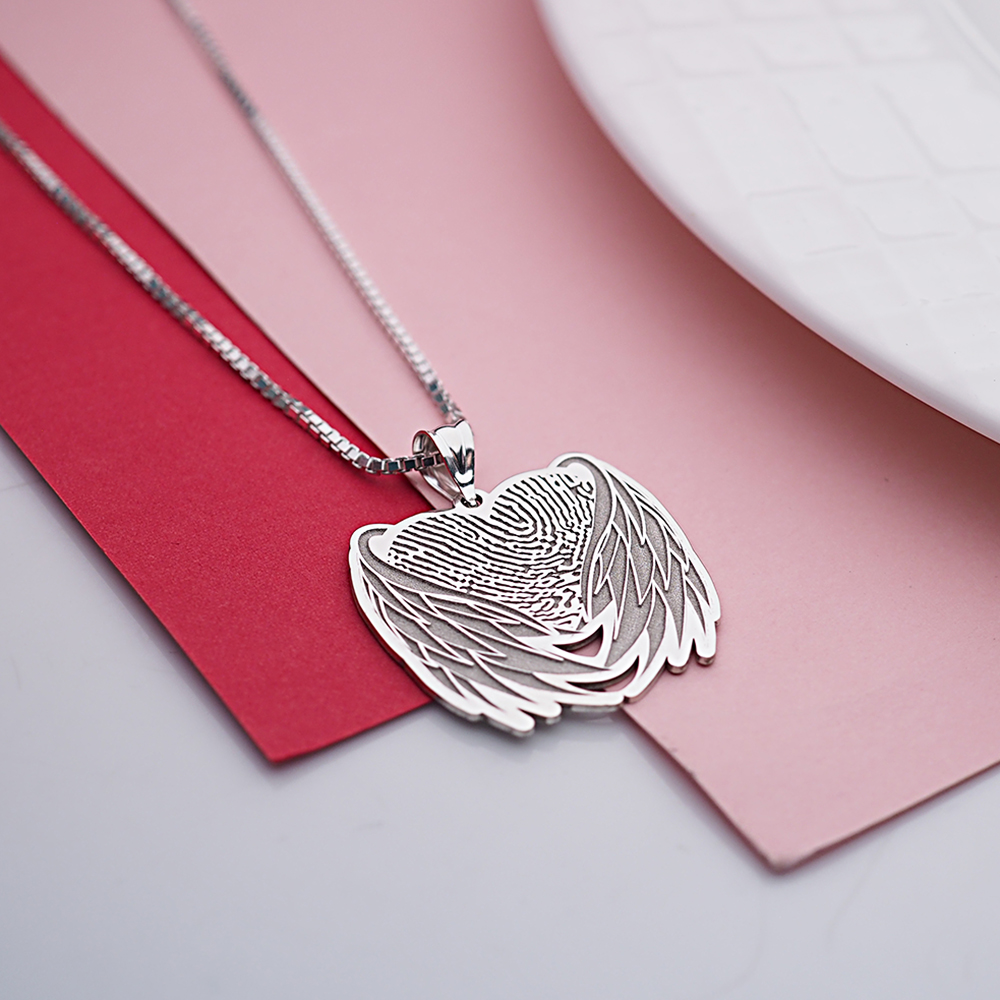 Custom Fingerprint Angel Wing Charm or Pendant
