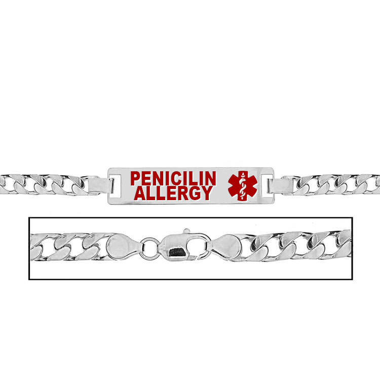 Women's Penicilin Allergy Curb Link Medical ID Bracelet