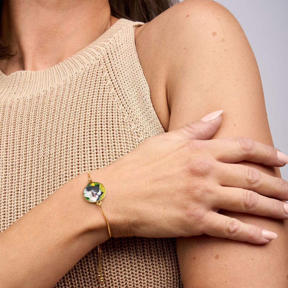 Adjustable Round Photo Engraved Bracelet