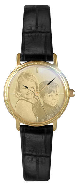 Women's Swiss Photo Laser Watch w/ Leather Band